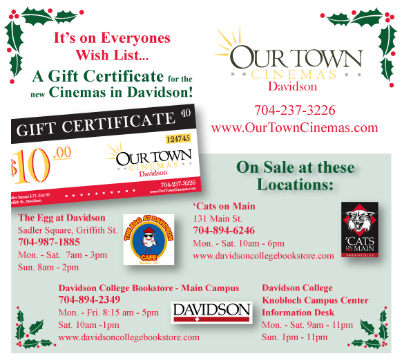 Our Town Cinemas Gift Certificates are now available for everyone on your gift list. They can be used to buy movie tickets and concessions in our new cinema…